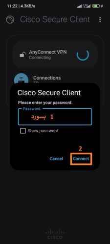 و سپس پسورد خود را وارد کنید و گزینه Connect را بزنید