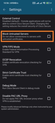 و سپس تیک گزینه Block Connections To Untrusted Servers را بردارید پنجره را بردارید.
