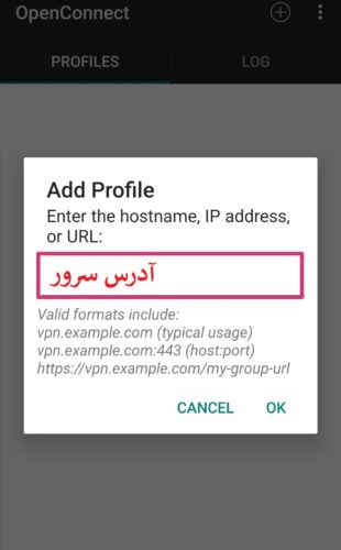 در صفحه باز شده آدرس سرور دریافتی خود رو وارد کنید، و گزینه ok رو بزنید.