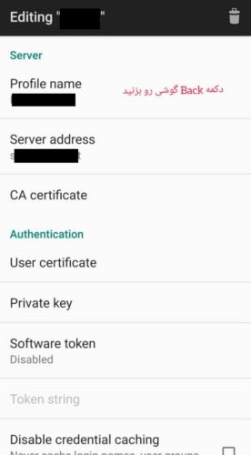 و برای مثال با کلیک بر روی profile name میتوانید اسم پروفایل را تغییر دهید و یا با کلیک بر روی Server address آدرس سرور را ویرایش کنید