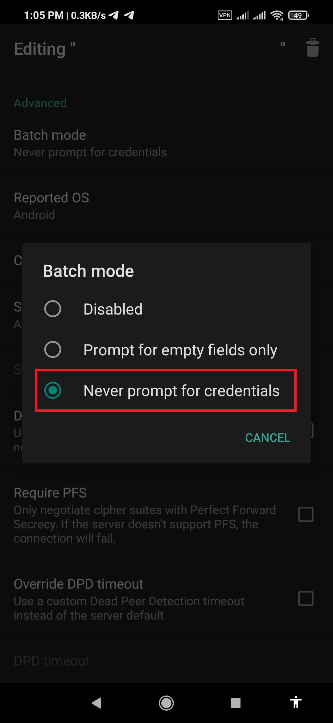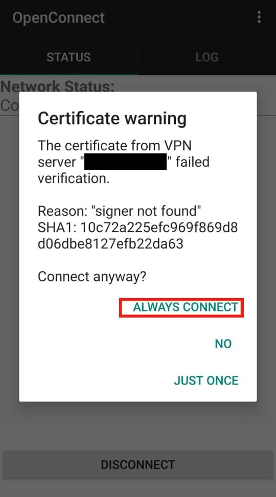 توجه داشته باشید که اپلیکیشن Openconnect اجازه دسترسی به قسمت ” VPN ” دستگاه را جهت اضافه کردن کانکشن درخواست میکند. و نیاز هست آن را تایید کنید!