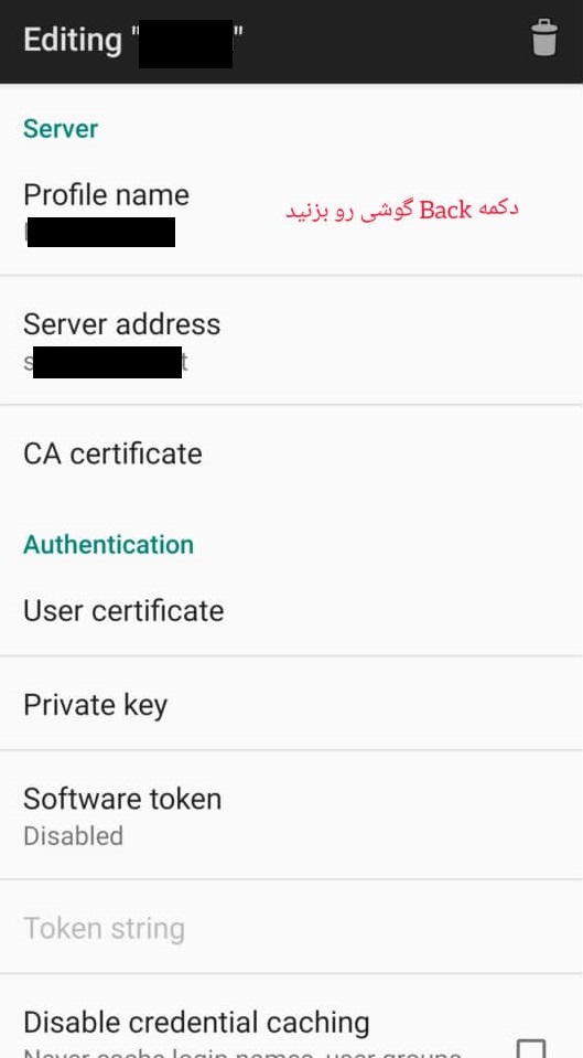 برای انجام بقیه مراحل دکمه back یا بازگشت گوشی خود را بزنید و به عقب برگردید.