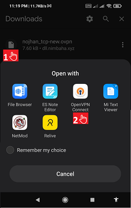 هم میتوانید بروی فایل .ovpn دانلودی کلیک کرده و اعلام کنید تا با برنامه Open VPN باز شود: