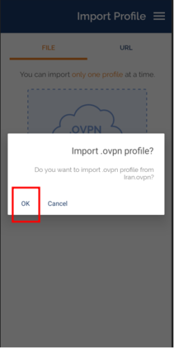 و سپس بصورت دستی فایل .ovpn را انتخاب و در نرم افزار Import کنید: