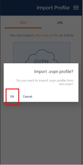 و سپس بصورت دستی فایل .ovpn را انتخاب و در نرم افزار Import کنید: